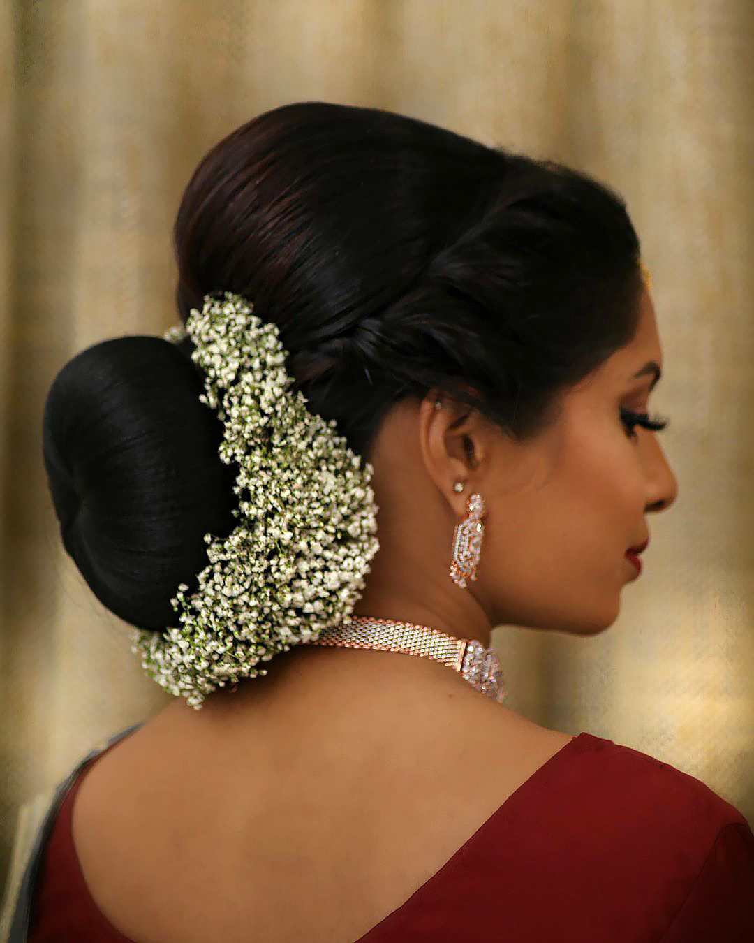 Pick half up half down a high bun a top bun low bun hitch bun ponytail buns space buns cornrow buns chaotic buns braided buns French twisted buns or a side bun. Add some colour your braid with small florals like this bride who has chosen to embed pink and green flowers in her hair to match the colour of her saree. Stylish Fashion For Women.